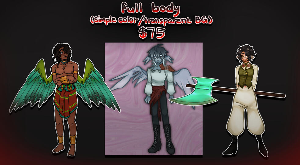 please give a detailed description of what you want (ex. oc references, inspiration, a general vibe you're thinking of) OR a doodle of the posing/ idea is highly appreciated!